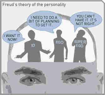 אני - אגו (ego): מרכז הבקרה של כוחות הנפש, השואף לאיזון על פי עקרון המציאות. האגו הוא זירת הפעילות המודעת של נפש האדם, והוא מסוגל לשלוט בכוחות האיד מחד ולווסת את דרישות הסופר-אגו מאידך.